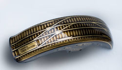 This fatboy motorcycle was to be kept dark and finish Matte. But how to get eyes glued to it? The answer was to use variegated gold leaf. The pattern was chosen to follow the lines of the motorcycle from start to finish. The styling and logos go such that they follow the contour of the motorcycle parts. Separate sections were made and they were decorated wit intricate patterns. Elaborate pin striping has been laid painstakingly on each and every corner of the motorcycle. The Logo/Symbol of the client (KE) has been laid beautifully in Gold.